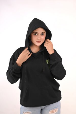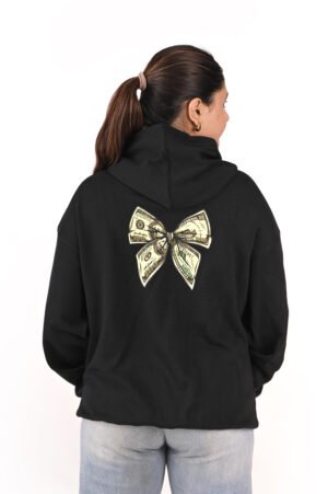 Women’s Oversized Black Hoodie – Money Bow Back Print